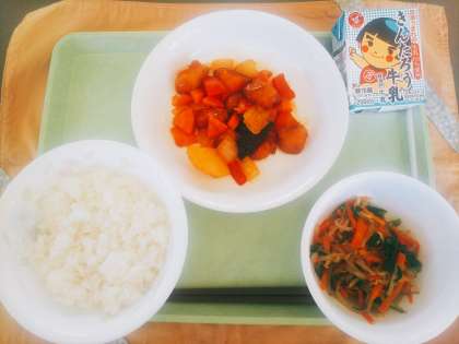 10月1日(月) 公開日 2018/10/01 更新日 2018/10/01 今日の給食 今日の献立は、ごはん、牛乳、白身魚の甘酢あんかけ、もやしナムルです。白身魚の甘酢あんかけは、新しいメニューです。白身魚を角切りしたものに片くり粉をつけて揚げ、にんじん、たまねぎ、赤黄ピーマン、じゃがいも、かぼちゃと甘酢タレと絡めました。色どりがきれいに仕上がり、甘酢のタレが魚も野菜もたくさん食べられます。じゃがいも、かぼちゃが崩れないように炒めるのがポイントです。 いいね(0)