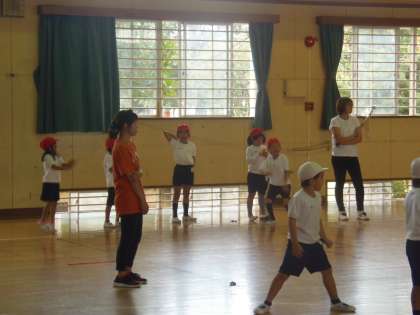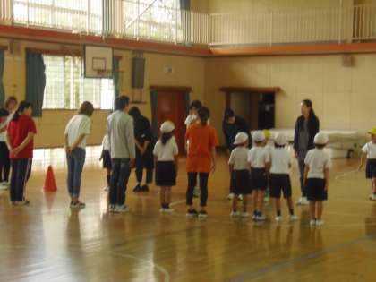 10月3日(水)3〜4校時、1年生の学年活動がありました。内容は「ドッジボール」です。赤白青黄の4色対抗戦で、子どもと保護者が一緒にチームを作って対戦しました。当たっても痛くない柔らかいボールを使用し、子どもも大人もボールをとったり、逃げたり、パスしたりと、動き回ることができました。応援もとても頑張っていました。楽しく交流しながら、気持ちよい汗をかくことができたと思います。