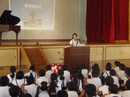 10月9日(火)後期始業式を行いました。3名による児童代表の言葉では、前期の反省を踏まえ、「まじめに」、あるいは「あきらめない気持ち」を大切にしながら算数のかけ算や面積などの学習を頑張ることを発表しました。6年生の代表は、計画委員会の活動を引き続きしっかりと行っていく決意を発表しました。これからもきっと新玉小学校をリードしてくれることでしょう。その後、後期の目標作り、計画作りをしっかりと行い、日々の点検を大切にしながら、目標達成に向けてみんなで力を合わせていくことを確認しました。