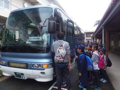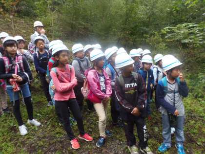 10月12日(金)5年生が小田原市農政課が進める森林学習「わたしの木づかい」パイロット事業に参加しました。10日(水)には農政課から講師をお招きし、森林についての学習を行いました。今日は「いこいの森」や「小田原木工団地」に校外学習に出かけ、森林の伐採の様子や木工場での作業を見学し、森林についての学習を深めました。森林の中を歩いたり、のこぎりで木を切ったりする等、様々な体験を通し、森林に対する関心・意欲がとても高まったようです。今後も引き続き活動を進めます。
