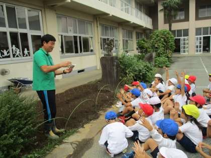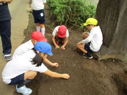 10月15日(月)2年生が大根の種まきをしました。その後、1年生も種まきに加わり、今年もたくさんの大根が育ちそうです。品種は30日大根といって、やや小ぶりですが、昨年度のように葉っぱも青々と茂ってほしいと思います。明日から水やりを頑張ってくれることでしょう。収穫をお楽しみに。