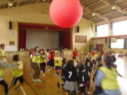 10月16日(火)3〜4校時、5年生の学年活動が行われました。内容は体育協会から講師をお招きし、「キンボール」や「パラシュット」に挑戦しました。色別対抗戦により、白熱した試合が展開されていました。たくさんの保護者の方にもご参加いただき、子どもたちとともに気持ちよい汗をかきながら、楽しく交流を図ることができたようです。