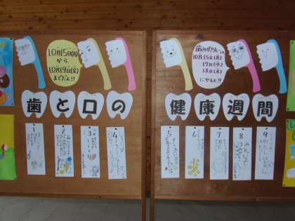 今週(10月15日〜19日)を歯と口の健康週間とし、青木養護教諭が授業を行っています。5年生は、ペットボトルの飲み物に含まれる砂糖の量について、実験をしながら学習を深めていました。また、6年生は、正しい歯磨きの仕方について、改めて学習していました。その他にも、給食後には、クラスの全員が取り組むことができるよう、歯磨きリレーを行っています。