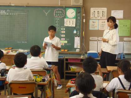 10月18日(木)5校時目、4年生は少人数担当の人見先生が算数「面積」の授業を公開していました。じんとりゲームをしながら「面積」についての興味・関心を高めてから課題に取り組みました。途中、ヒントカードを出したり、グループや全体で話し合ったりしながら、課題を解決していきました。積極的に前に出て発表することもできており、すばらしいと思いました。