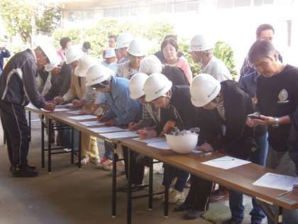 10月21日(日)小田原市いっせい防災訓練が行われました。新玉小学校にも計275名の地域の方々が避難し、避難者カードを記入したり、仮設便所や炊き出し・給水準備をしたり等、広域避難所開設訓練が進められました。今回は屋内運動場に仮設住居スペースを作ることにも挑戦しました。また、子どもたち向けにクイズ形式のコーナーもありました。今後も、もしもの時に備え、ぜひご参加ください。
