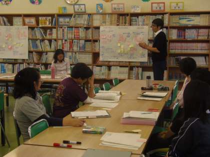 10月23日(火)放課後、2年生の研究授業に対する研究協議の時間がありました。授業についての成果や課題をグループに分かれて出し合い、検討し、今後の授業に生かすことができるようにします。よりよい授業を実践するため、研究授業や研究協議の時間をこれからも大切にしていきます。