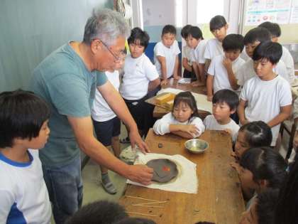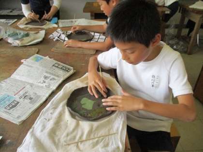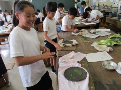 10月26日(金)4年生が図工の時間に「お皿作り」に挑戦しました。講師の方をお招きし、粘土を練ってお皿の形を作ったり、好きな葉っぱを用意して模様にしたりしました。この後、乾燥させてから焼いてもらい、完成する予定です。さて、どんなできばえになるか、今からとっても楽しみです。