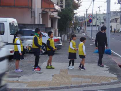 11月19日(月)児童会の代表委員会で決まった「あいさつ運動」が始まりました。今朝の担当は赤1班の子どもたち。「新玉あいさつ隊」と書かれた黄色のビブスを着て、正門や昇降口、七枚橋のところに立って元気にあいさつをしました。今後も縦割り班ごとに「あいさつ運動」を展開します。日頃見守りいただいているボランティアの皆様、よろしくお願いいたします。