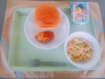 11月22日(木) 公開日 2018/11/22 更新日 2018/11/22 今日の給食 今日の献立は、丸パン、牛乳、てりやきチキン、ペペロンチーノです。 麺の日は個包装の麺の上にソースをかけて食べるので、ペペロンチーノのように麺を茹でて炒めるメニューは、パンの日に出ます。にんにく、唐辛子、コンソメで味付けしました。パンの日に麺が出るのは珍しいので、子どもたちは新鮮だったようです。 いいね(0)
