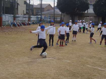 11月26日(月)3年生が、体育「キックベースボール」に挑戦していました。キックベースボールはまだ始まったばかりで、ルールについても子どもたちと話し合いながら決めています。攻める時も守る時も、思い切り蹴って、走って、チームワークよく動いて守る。だいぶ寒くなりましたが、体が温まる楽しい体育の時間になりそうです。
