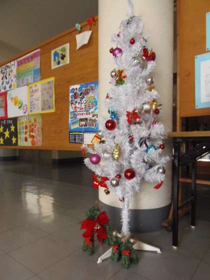 12月11日(火)児童昇降口のところに白いクリスマスツリーが飾られています。地域の方からご寄付いただきました。子どもたちは、登校すると白いクリスマスツリーを見て、本格的な冬の訪れを感じているのでしょうか。校長室前にも「池と花の会」からいただいたドーム型の動くツリーを展示してあります。来校の際、ご覧いただければと思います。