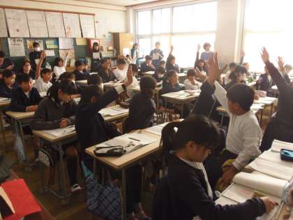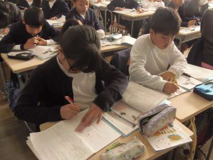 12月18日(火)2校時目、5年生は校内研究会の授業で国語「大造じいさんとがん」の授業を行いました。今回は「じゅうをおろしてしまった時の大造じいさんの気持ち」について話し合いました。友だちの意見を認めながらも、自分なりに読み取ったことをしっかりと主張し、話し合いにより大造じいさんの気持ちに迫ることができました。それぞれの考えを認め合う姿勢が素晴らしいです。