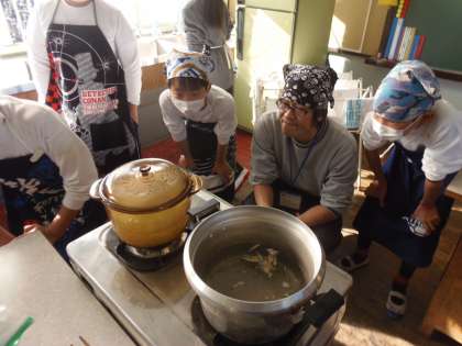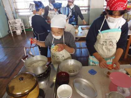 家庭科の授業(5年) 公開日 2018/12/19 更新日 2018/12/19 できごと 12月19日(水)5年生が家庭科「ごはんとみそ汁」で調理実習に挑戦しました。校舎裏手の田んぼで育てたお米を炊きあげました。水を入れすぎてしまったのではないかと心配しましたが、つやつやの美味しいご飯ができました。畑で育てた大根も具に加え、具だくさんのお味噌汁を作ることもできました。とても美味しくいただきました。久野の渡辺様、JA酒匂店様をはじめ、ご協力いただきました皆様、ありがとうございました。 いいね(0)