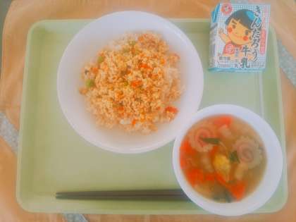 今日の献立は、そぼろごはん、牛乳、お雑煮です。今日から給食が始まりました。冬休み明け初日でお雑煮が出ました。新玉小学校区の久津間さんより鰹節を納品して、だしをとっています。お昼近くになると、かつおぶしの良い香りが給食室からしていました。美味しいだしを使用したお雑煮は、優しくホッとする味になり、すべてのクラスで完食でした。寒い日が続きますので、今日のようにしっかり食べて体を温めてほしいです。