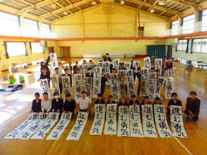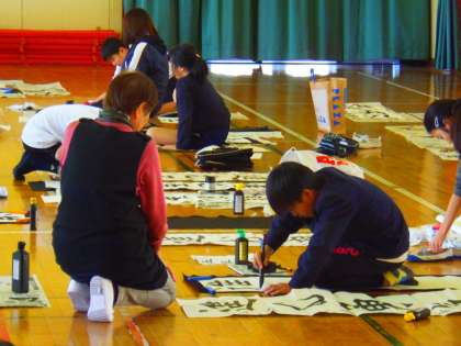 書き初め会(5年) 公開日 2019/01/09 更新日 2019/01/09 できごと 1月9日(水)3〜4校時目、5年生の書き初め会がありました。気持ちを落ち着かせた静かな体育館の中で、お手本をしっかりと見ながら、気持ちを集中させて筆を運ぶことができていました。書き終えた後、どの作品を提出するのかをボランティアの方と決めたり、友だちと話し合ったりする場面も見られました。とてもよく頑張ったと思います。子どもたちを励まし支えていただきましたボランティアの皆様、ありがとうございました。 いいね(0)