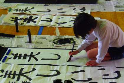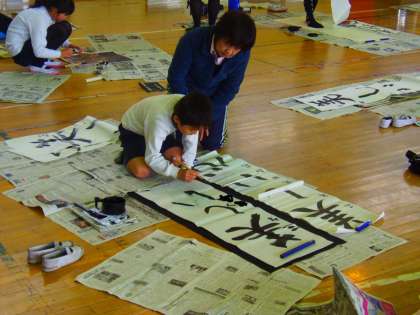 書き初め会(3年) 公開日 2019/01/10 更新日 2019/01/10 できごと 1月10日(木)1〜2校時目、3年生の書き初め会が行われました。ストーブをつけても寒さが厳しい体育館の中、子どもたちは集中して書き初めに取り組みました。書く字は「美しい心」。12月の授業や冬休みの宿題でも取り組んだ成果を生かし、子どもたちは一画一画とてもていねいに書いていました。とても頑張っていました。 いいね(0)