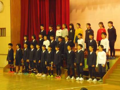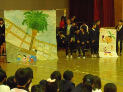 1〜5年生の出し物に続き、6年生がお礼の出し物をしました。内容は、「特技の披露」「長縄新記録への挑戦」「ひまわりの歌」の3本です。特技は、ダンスやバトン、ピアノ等の得意技を披露しました。拍手や「オー、すごい」といった声が聞こえてきました。長縄は、長縄フェスティバルの時に出せなかった新記録更新に挑戦し、なんと2分間で256回を跳ぶことができました。みんな大喜びでした。そして、「ひまわりの歌」は心に響くものがありました。泣いている子もいました。6年生のすばらしさや優しさを改めて感じることができた時間でした。