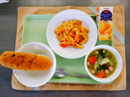 3月7日(木) 公開日 2019/03/07 更新日 2019/03/07 今日の給食 今日の献立は、レーズンパン、みかんジュース、ペンネグラタン、ポトフです。みかんジュースは、6年生のリクエストメニューです。ペンネグラタンは、冷めても固さがちょうど良くトマトソースの味とチーズがとてもちょうど良かったです。レーズンパンは苦手な子もいますが、「先生、今日は食べられたよ!」という子が何人かいました。ポトフは野菜の甘みがよく感じられました。 いいね(0)