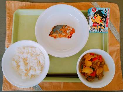 今日の献立は、ごはん、牛乳、さわらのしょうゆ焼き、南蛮煮です。南蛮煮とは、煮物の中に唐辛子が入っている料理のことです。唐辛子は別名を南蛮辛子と呼ぶことから、この名がつきました。南蛮煮は、しょうゆベースではなく赤味噌で味つけをして、唐辛子を少し加えます。ごはんのおかずになり、とても美味しいですよ。