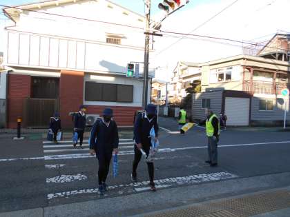 見守り隊の方とお話をすると、「まだ、一人通ってないんだよね。もうちょっと待っているから。」「子供が小学生の頃からやっているので、もう30年になりますよ。」等話を聞きました。地域と子供たちの関りや地域の支えを感じます。いつも子供たちのためにありがとうございます。