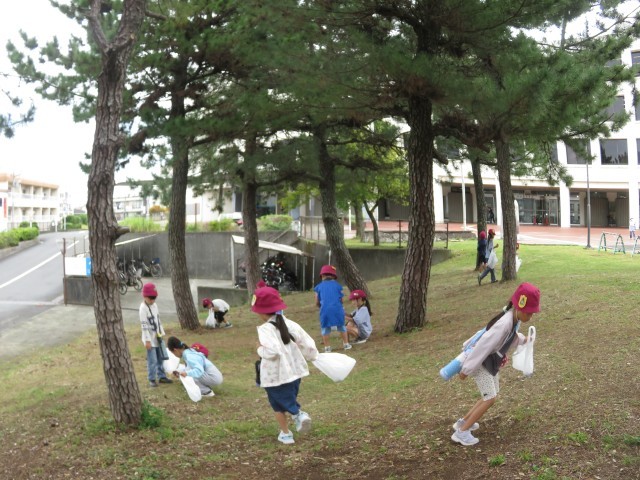10月7日(火)に小田原市役所の広場に秋探しに行ってきました。学校の中では拾えない、まつぼっくりやいろいろな種類のどんぐりを見つけることができました。子供たちは目を輝かせながら秋の物を探している姿が見られました。これから拾ったものをどのようにするか話し合いたいと思います。