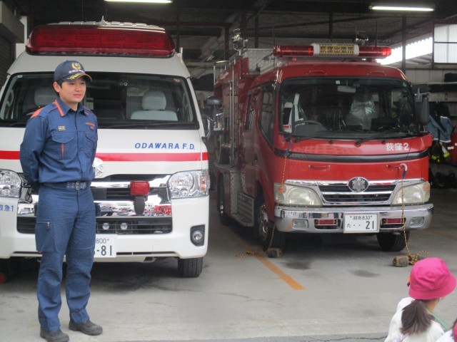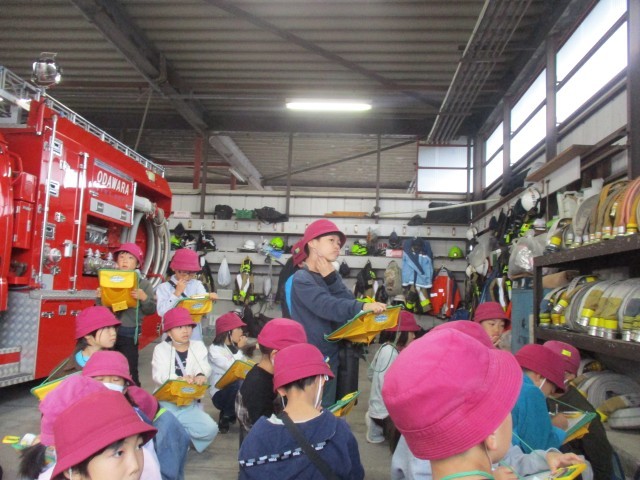 3年生の社会科では、「地いきの安全を守る~火事からまちを守る~」の学習をしています。そこで、小田原消防署荻窪出張所へ校外学習に行ってきました。