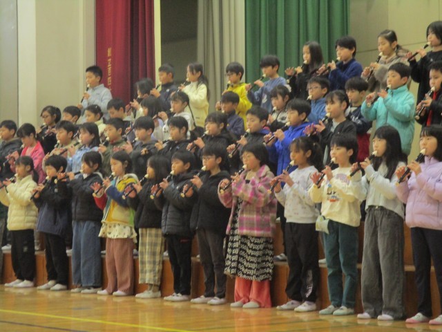 1月23日に、3年生の音楽朝会を行いました。今年から学習し始めたリコーダーという楽器を紹介したり、音楽の学習で演奏できるようになった曲を披露したりと、リコーダーの魅力をたくさん伝えることができた朝会となりました。特に、「せいじゃの行進」では、「せいじゃの行進 ならぬ 3年生の行進!」と、銘打って、リコーダーを演奏しながら行進しました。発表することの達成感や大変さを感じ、また一つ、成長することができました。