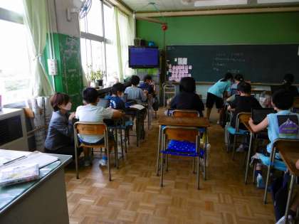この日はICT支援員さんが入ってくださいました。わからないことがあると、担任や支援員さんに教えてもらうとともに、友だち同士で教え合う姿も見られました。