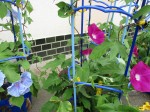 臨時休業中にご家庭で種まきをしていただいた1年生のアサガオ。学校に届けていただいてから、支柱立てや追肥もし、毎日登校してからの日課である子どもたちの水やりのおかげでぐんぐん成長し、きれいな花を咲かせるようになってきました。