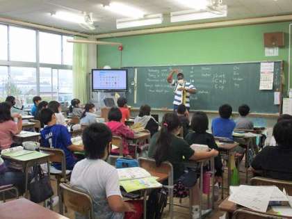 5年生の教室ではALTの先生が中心となって楽しそうに授業をしています。