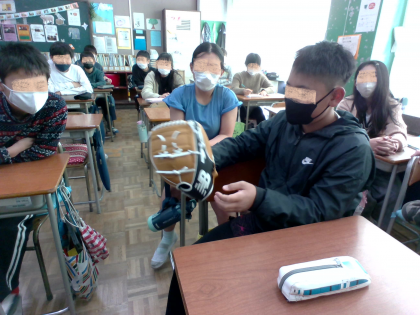 全国の小学校に贈られた大谷翔平選手のグローブが本校にも届きました。まずは各クラ...