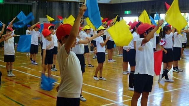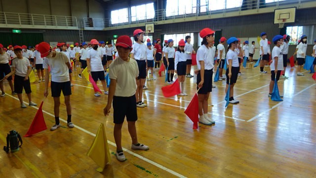 10月に入りスポーツフェスティバルの練習をそれぞれの学年で始めています。今日の5時間目には5・6年生が体育館で表現の練習をしていました。旗を使った演技が入るようです。旗の演技以外にも何かあるのでしょうか?全貌はまだ見えていませんが、高学年らしい演技を見せてもらえると嬉しいです。