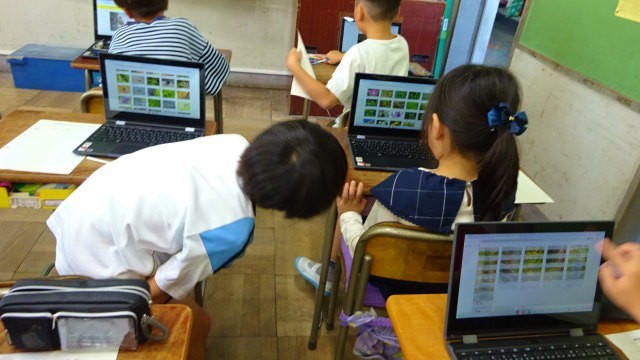 2年生は生活科の学習で秋の虫と鳥について調べていました。昨日は3年生が動画で昆虫の成長の仕方について学習する様子をお伝えしましたが、2年生はまた別のデジタル図鑑を使って調べていました。全員分の図鑑を用意することは難しいですが、デジタルですと全員が手元で確認することができて便利ですね。紙とデジタル、目的に応じて上手に使っていきましょう。