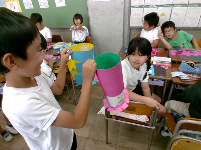 紹介してもらった子どもたちは「すごーい!!」「見せてみせてー!」と友達の作品に関心をもち、温かい声が教室に広がりました。