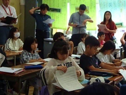 今日の学習では、学級のすべての子ども達が自分の考えをもち、それをワークシートに書き、書いたことを発表していました。担任が「〜について、ワークシートに書いて」と声をかけると、みんなの鉛筆がさっと動き始め、集中して課題に向かっていました。そして友だちの考えをしっかり聞いていました。誰もがしっかりと学習に参加している姿に、これまでの積み重ねを感じました。