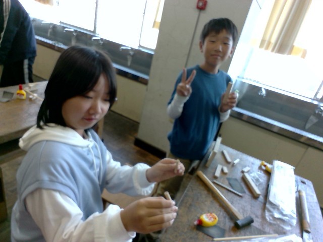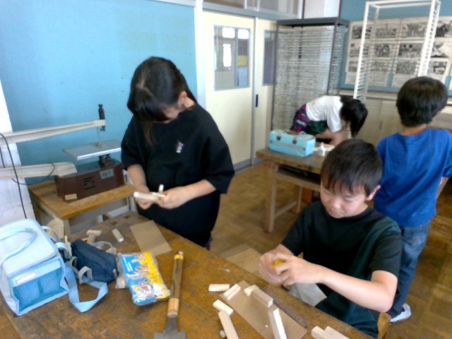 ボンドを使って組み合わせたり、マジックで色をつけたりして完成に近づいています。
