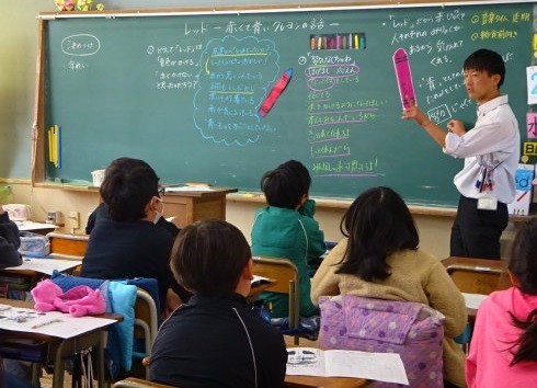 4年生の道徳では「レッド~赤くて青いクレヨンの話~」を教材に学習を進めました。この教材は4年生の道徳の教科書にあるものですが、さらに担任はこの教材のもとになった絵本を読み聞かせして学習を始めました。マイケル・ホールによる「『レッド』あかくてあおいクレヨンのはなし」(子どもの未来社)は、アメリカで数々の賞を受賞した絵本で、本当は青いクレヨンなのに赤いラベルをはられた「レッド」が主人公のお話です。自分自身を発見することが大切、というメッセージが込められています。