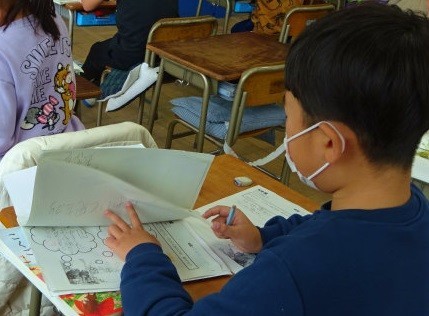 昨年度も「お手紙」というお話の素晴らしさについてお伝えさせていただいたのですが、今年度も2年生の学習を参観して、改めてこのお話のもつ良さを感じました。子ども達は「この場面でこうだったよね・・。だから・・」などと、これまで学習してきたことをふまえながら、お手紙をまつ2人の気持ちを考えていました。初めは「(自分に届くであろうお手紙を待っている。しかも初めてもらうお手紙)がまくんのことならわかるけど、かえるくんのことはわからないなぁ」と言っている子もいました。どちらかと言うとがまくんの方が感情移入しやすいのかもしれません。がまくんの気持ちを考えながら、学習の最後には、なぜかえるくんも幸せな気持ちだったのか、についても話が広がっていきました。