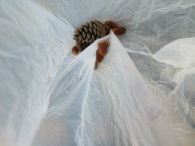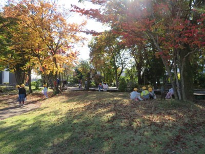 どんぐりや松ぼっくり、紅葉した葉っぱなどを子どもたちは夢中になって拾っていました。