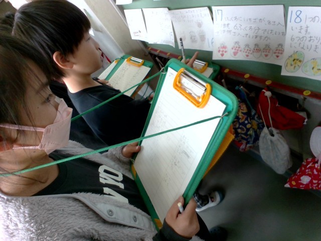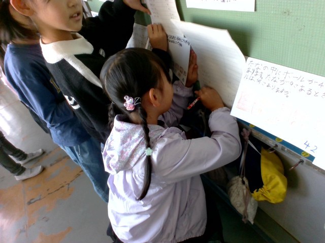 自分たちが作った問題を廊下に掲示し、みんなで挑戦!!