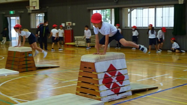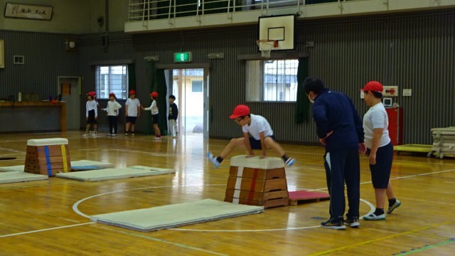 3年生の体育では、跳び箱の学習をしていました。自分が跳んだら、マットや跳び箱を整え、次の人に合図をする、ということがしっかりできていました。これからも安全に気をつけて練習してほしいです。