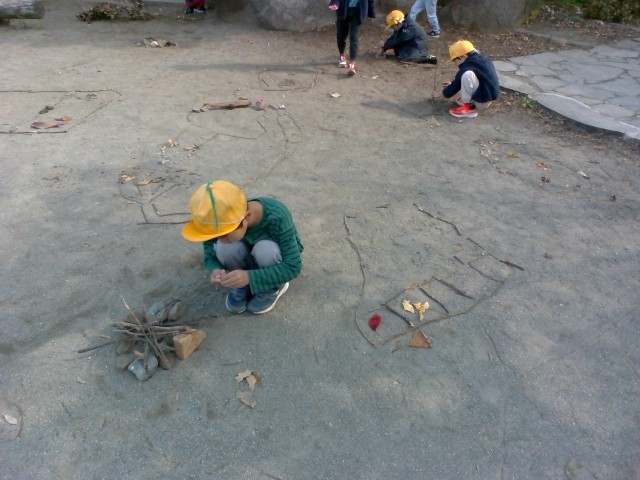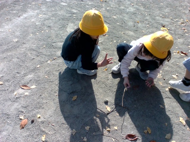 今日の図工の時間は、身の回りにある秋の自然(どんぐり・葉・石・木)を使って、好きな模様や形を作りました。思い思いの作品を仕上げることができました。