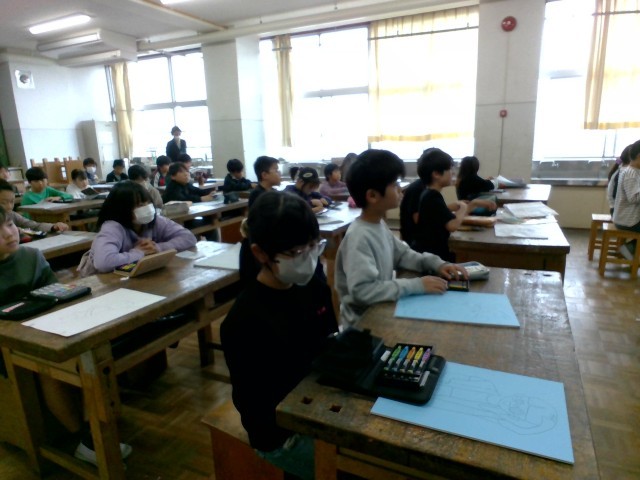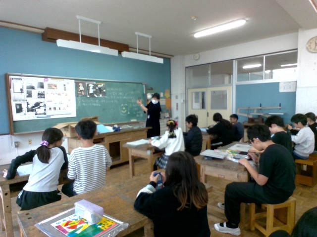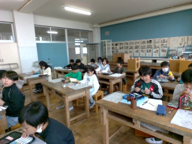 これから使う3種類の彫刻刀の説明をしっかり聞きました。