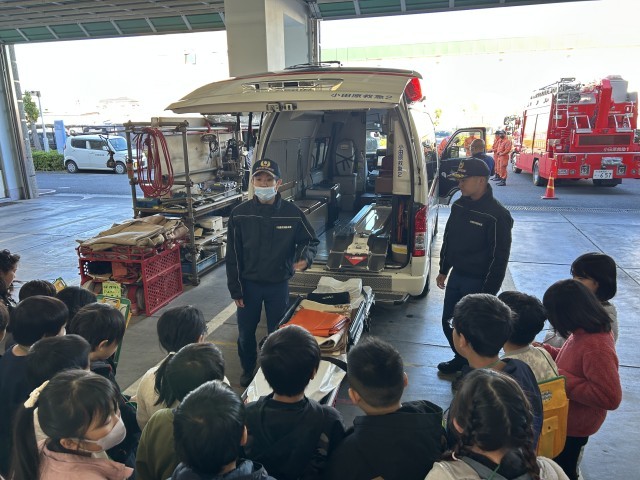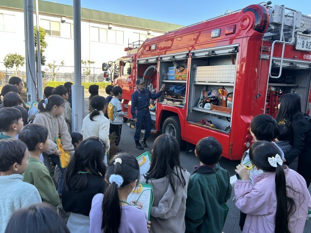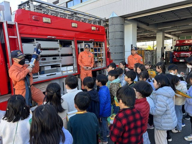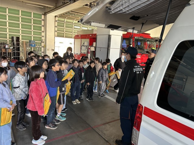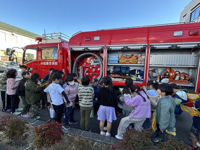 今日は、3年生が校外学習で小田原消防本部の見学に来ています。3種類の消防車や救急車など、普段なかなか見れないものをたくさん見せてもらいました。説明をじっくりと聞きながら、たくさんメモをしている子どもたちの姿がとても印象的でした。目を輝かせながら隊員の方に質問している様子も見られました。