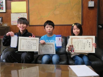 賞状を校長から受け取って、とても嬉しそうにしていました。