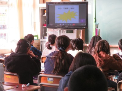 次に、安全指導担当の職員から、芦子小学校の冬休みの合言葉「こう ゆう あい て か」についての話がありました。