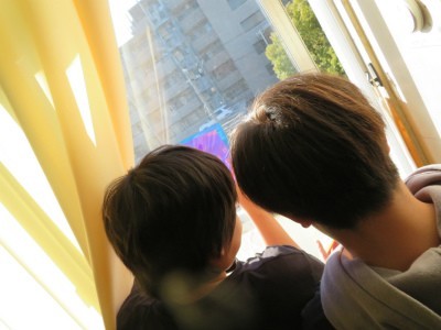 窓のところで、セロファン等を重ねてかざしてみて、どのような色になるのかを試しながら制作している子もいました。