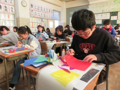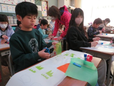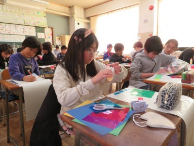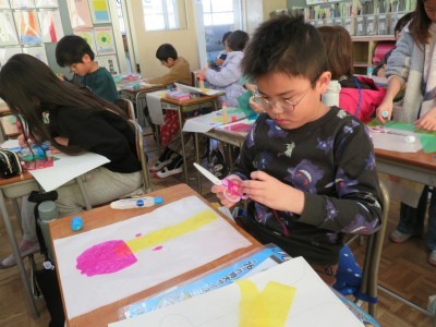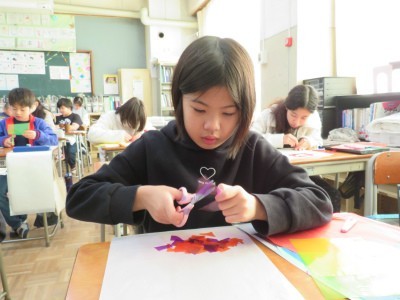 先日は、4年2組が「光のさしこむ絵」の制作に取り組みましたが、この日は、4年1組の番でした。