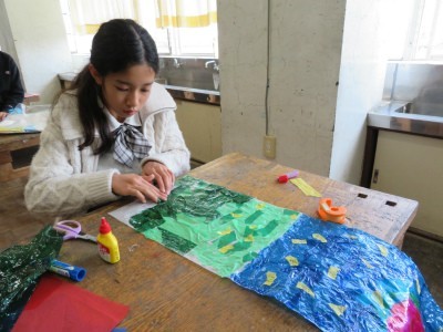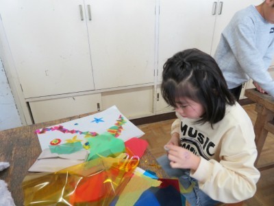この日は、先週に引き続き「光のさしこむ絵」の制作活動に取り組みました。