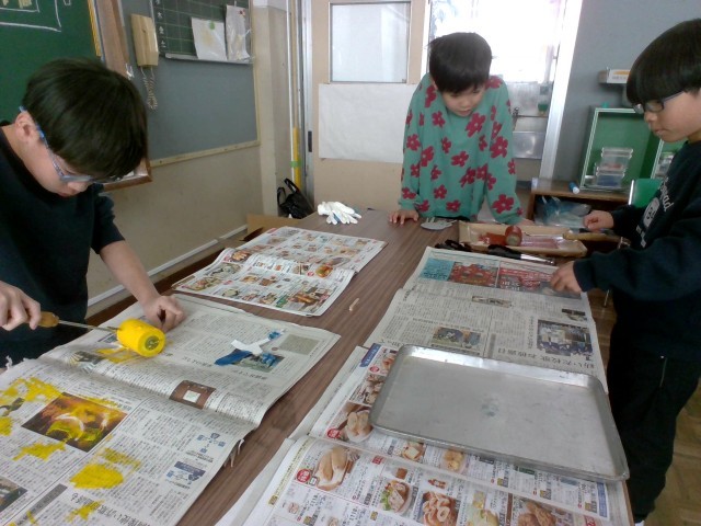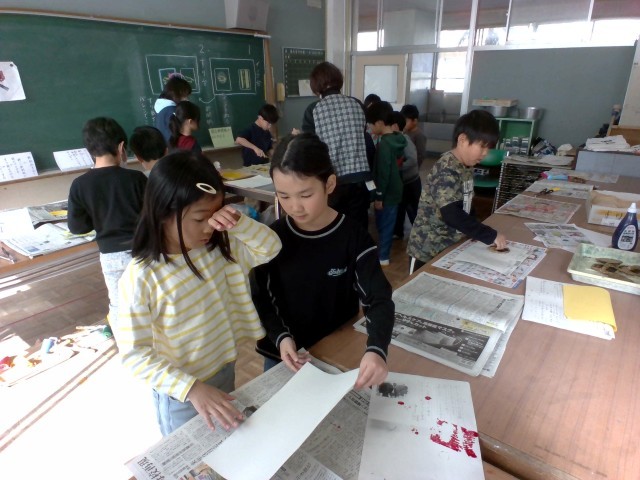 今日は版を作ったり色をつけて刷ったり、うれしそうに活動していました。出来上がりが今からとても楽しみです。